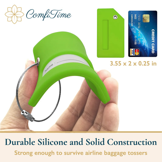 Luggage Tags – TSA Approved Silicone Luggage Tags for Suitcases, Travel Bag Tags for Luggage, Baggage & Backpacks, Luggage Identifier W/ Privacy Cover, Stainless-Steel Loop, 4 Pack, Green
